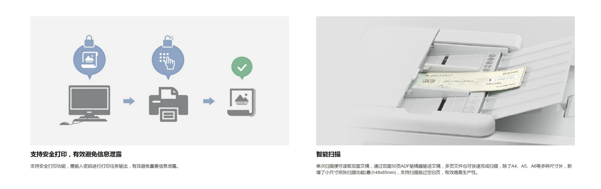 | 特殊复印功能 | 缩放复印,2合1复印,4合1复印,ID卡复印,护照复印,消除黑框等 |