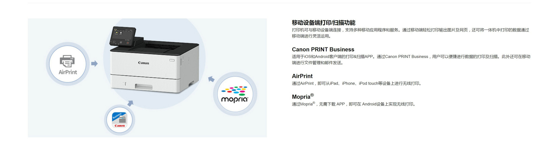 *7 移动打印App Canon PRINT Business支持Android 4.1以上和iOS 9.0以上系统,可通过苹果APP store及百度手机助手免费下载。
