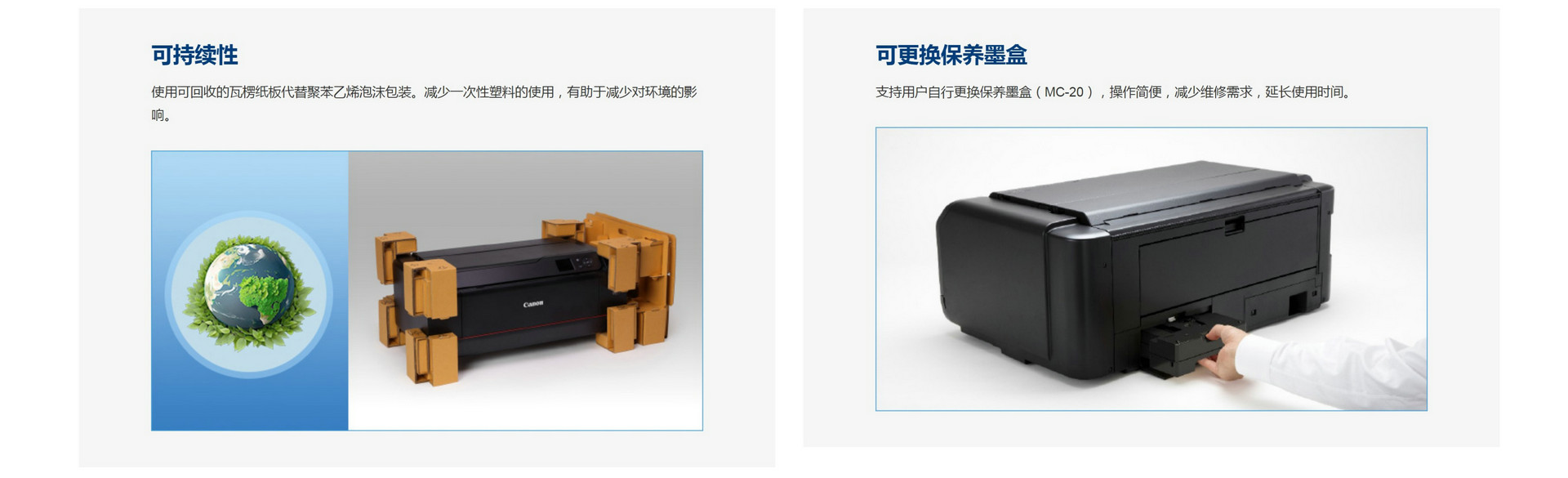 2).当您使用打印机时,保养墨盒用来收集打印时喷射出来的多余墨水。当保养墨盒已满,为了防止漏墨,打印机会停止工作,请更换新的保养墨盒。请提前准备好新的保养墨盒,并按照说明更换新的保养墨盒。