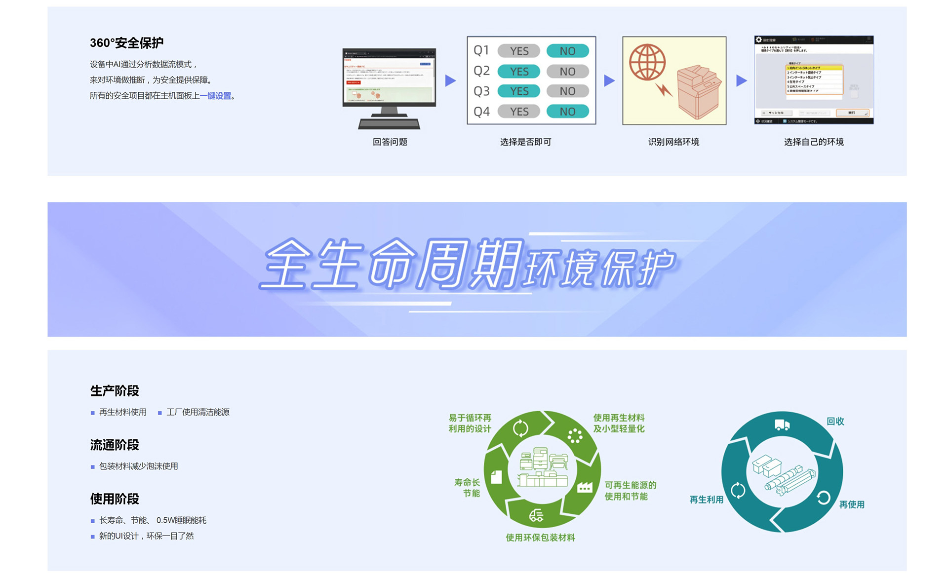 | 首页输出时间 | 大约2.7/3.7秒(黑白/彩色 A4)或更少 | ||