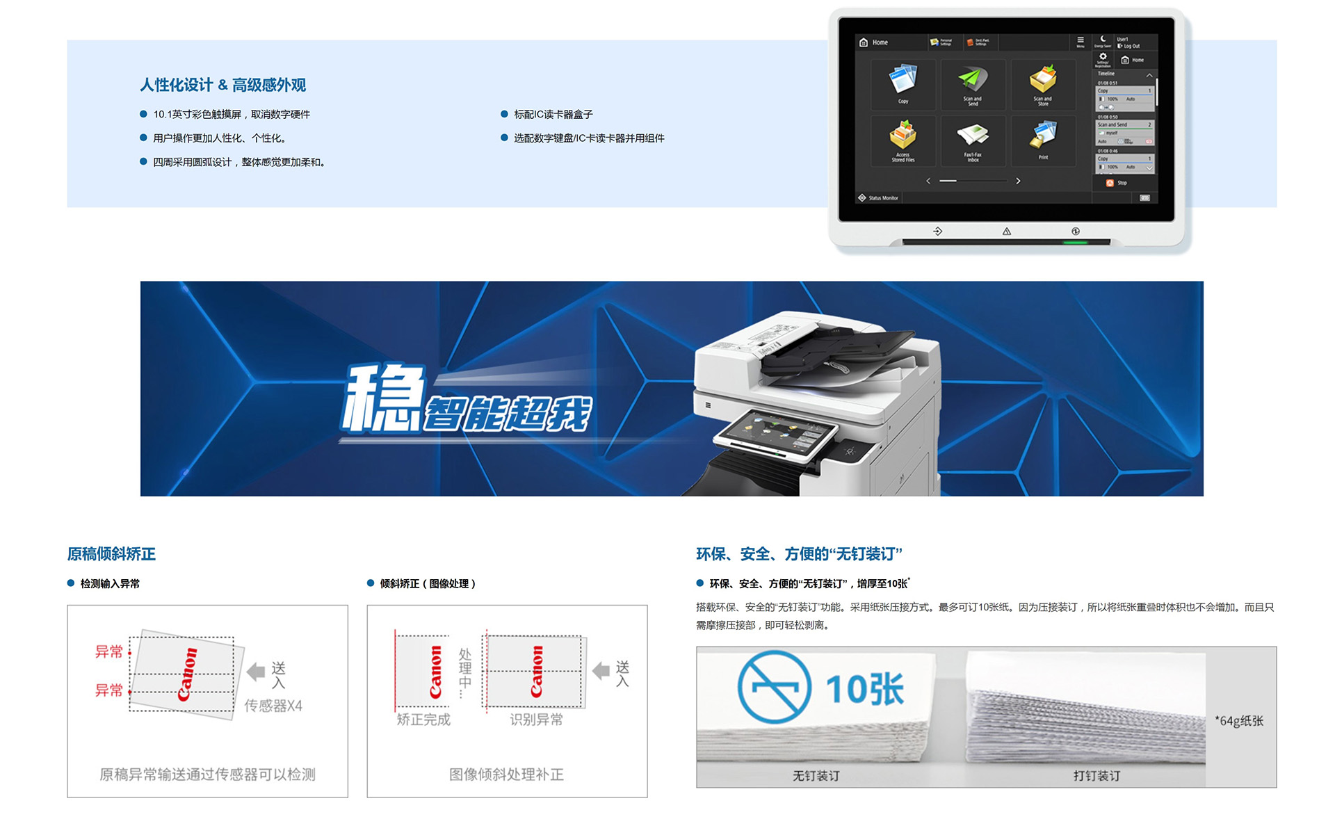 | 主机尺寸(宽×深×高) | 565 x 719 x 891 mm (含双面自动扫描输稿器) | ||