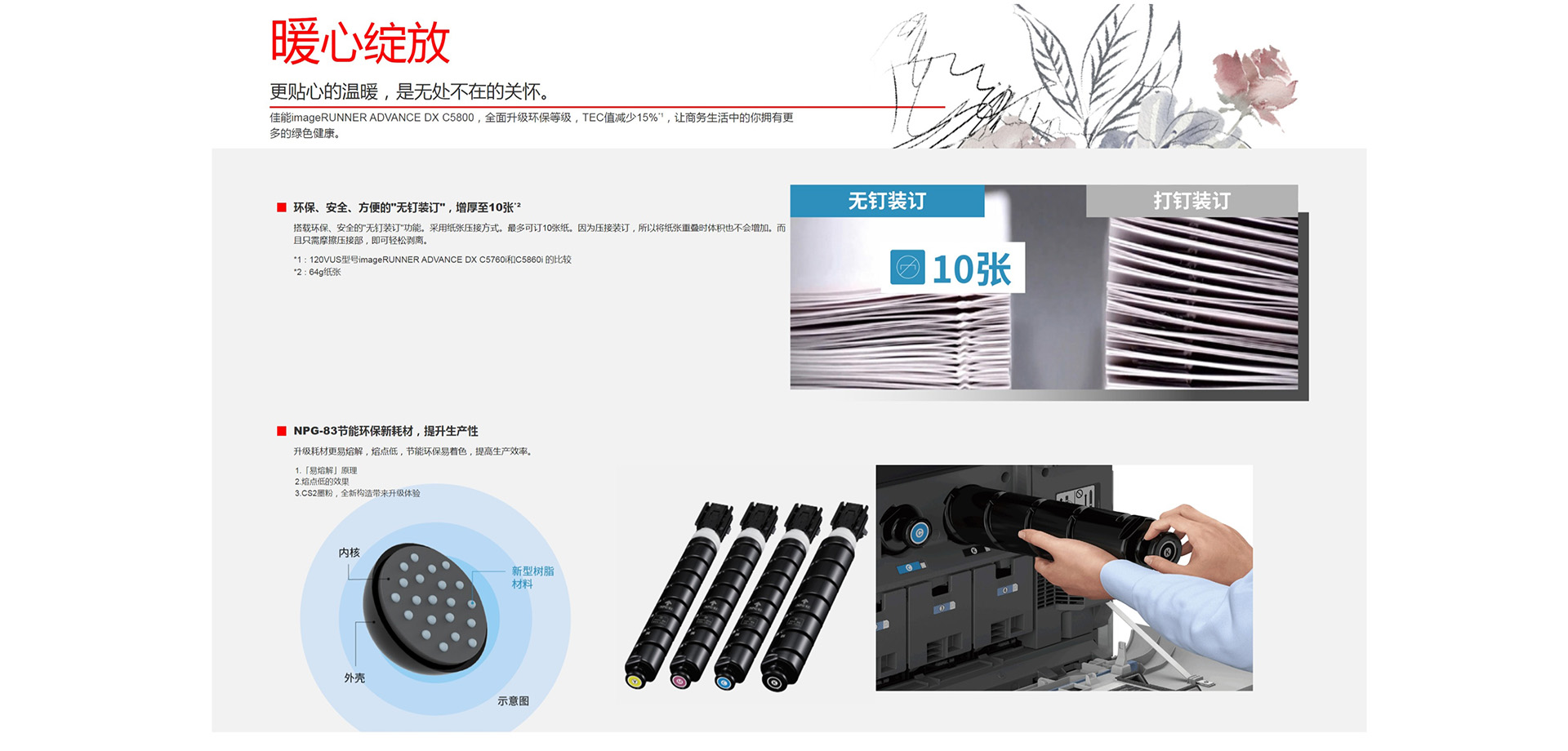 | 无钉装订 | 8张(65 - 81.4 g/m²) | |