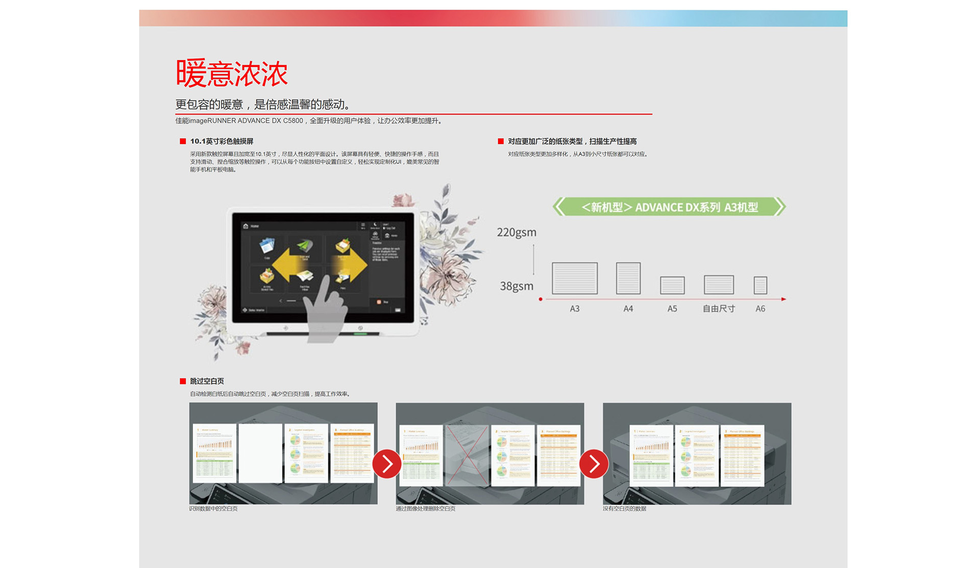 原稿厚度 单面 38-220gsm(BW、CL),A6R或更小尺寸: 50-220gsm