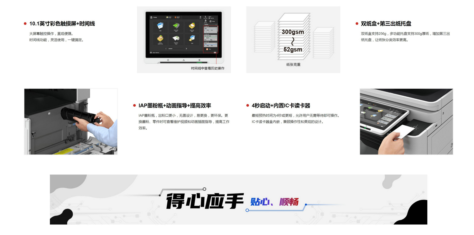 | 供纸量(A4,80gsm) | 标准 | 550张×2(纸盒供纸)+100张(手送托盘) |