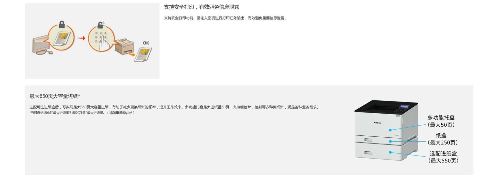 | 最大进纸量 | 850页(普通纸,80g/m²) |