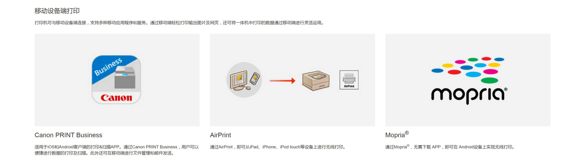 *7 移动打印App Canon PRINT Business支持Android 4.1以上和iOS 9.0以上系统,可通过苹果APP store及百度手机助手免费下载。