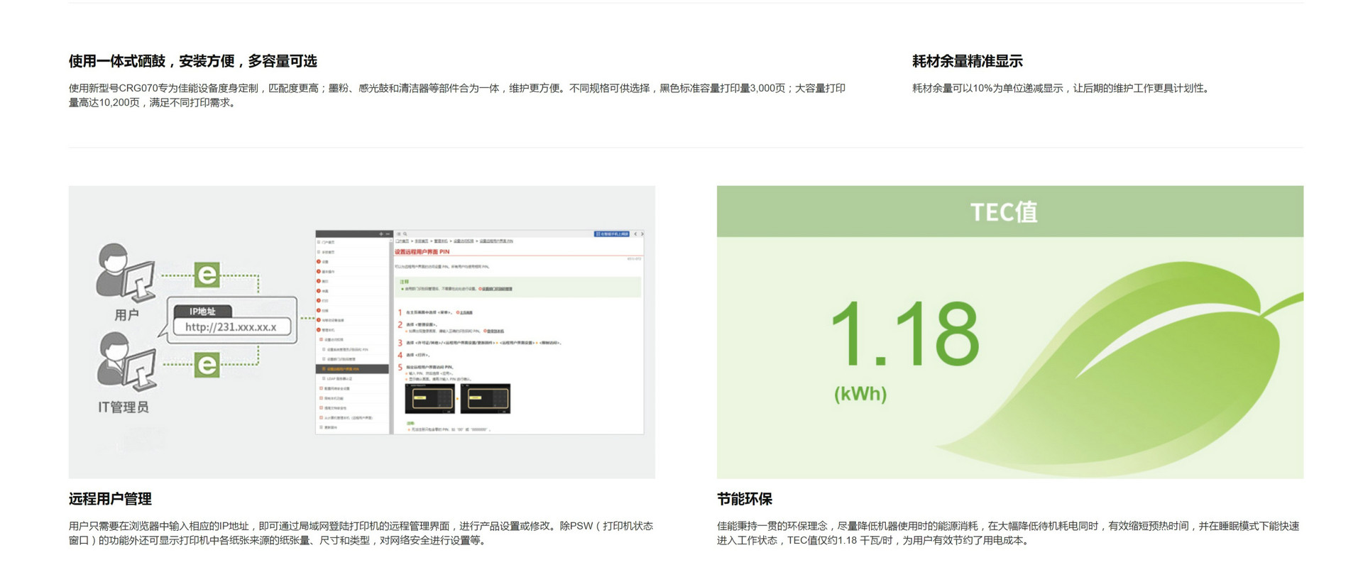 | 耗材及打印量※2 | CRG070:BK:3,000页 |