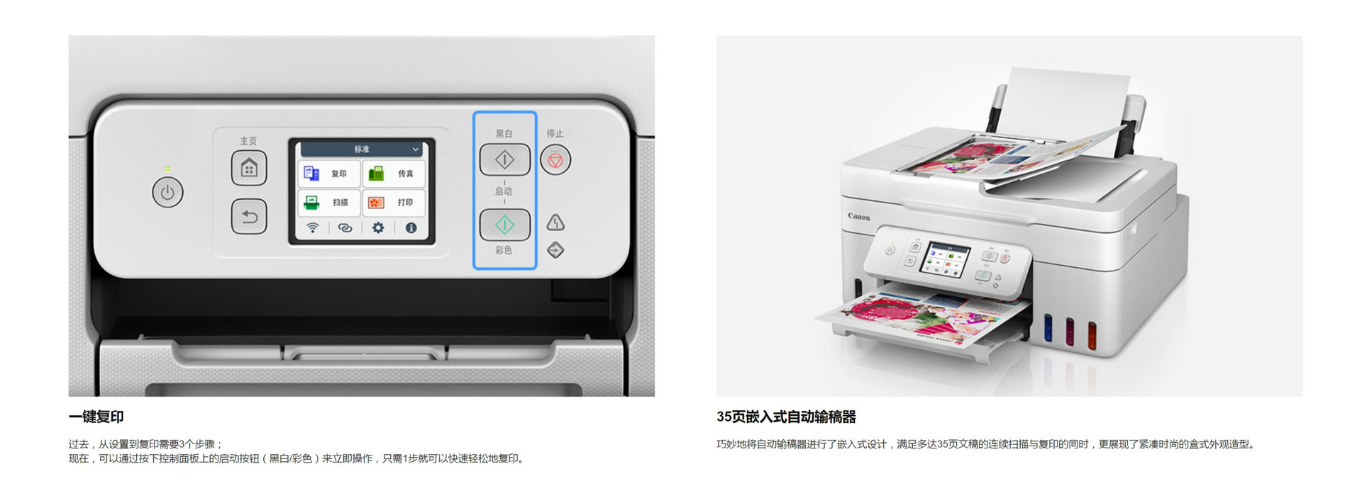 *注:图片为参考式样,规格及设计以实物为准。上述所有数据均基于佳能测试结果,产品规格及外观如有变化,恕不另行通知。