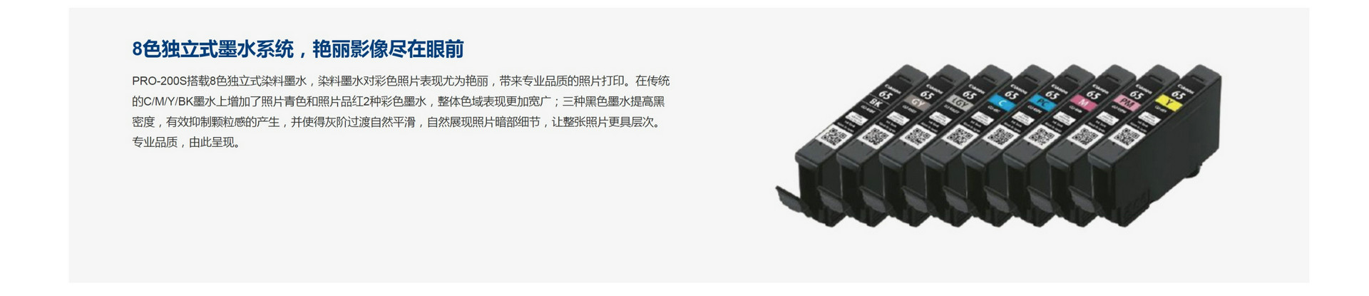| 销售用墨水打印量*1 | 照片(4"x6",ISO/IEC 29103,无边距) | 彩色/PT-101 | CLI-65 BK: 860页/GY: 595页/LGY: 965页/C: 482页/PC: 275页/M: 610页/PM: 320页/Y: 295页 |