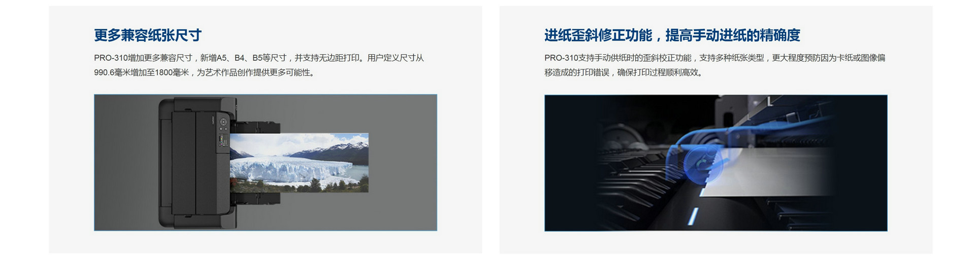 | 纸张尺寸 (无边距) | A5、A4、A3、B5、B4、Legal、Letter、Ledger、Hagaki、A3⁺、L、2L、4x6、5x7、11x14、13×19 Super B、7x10、8x10、10x12、12x12、Square(127毫米)、210x594毫米 | ||